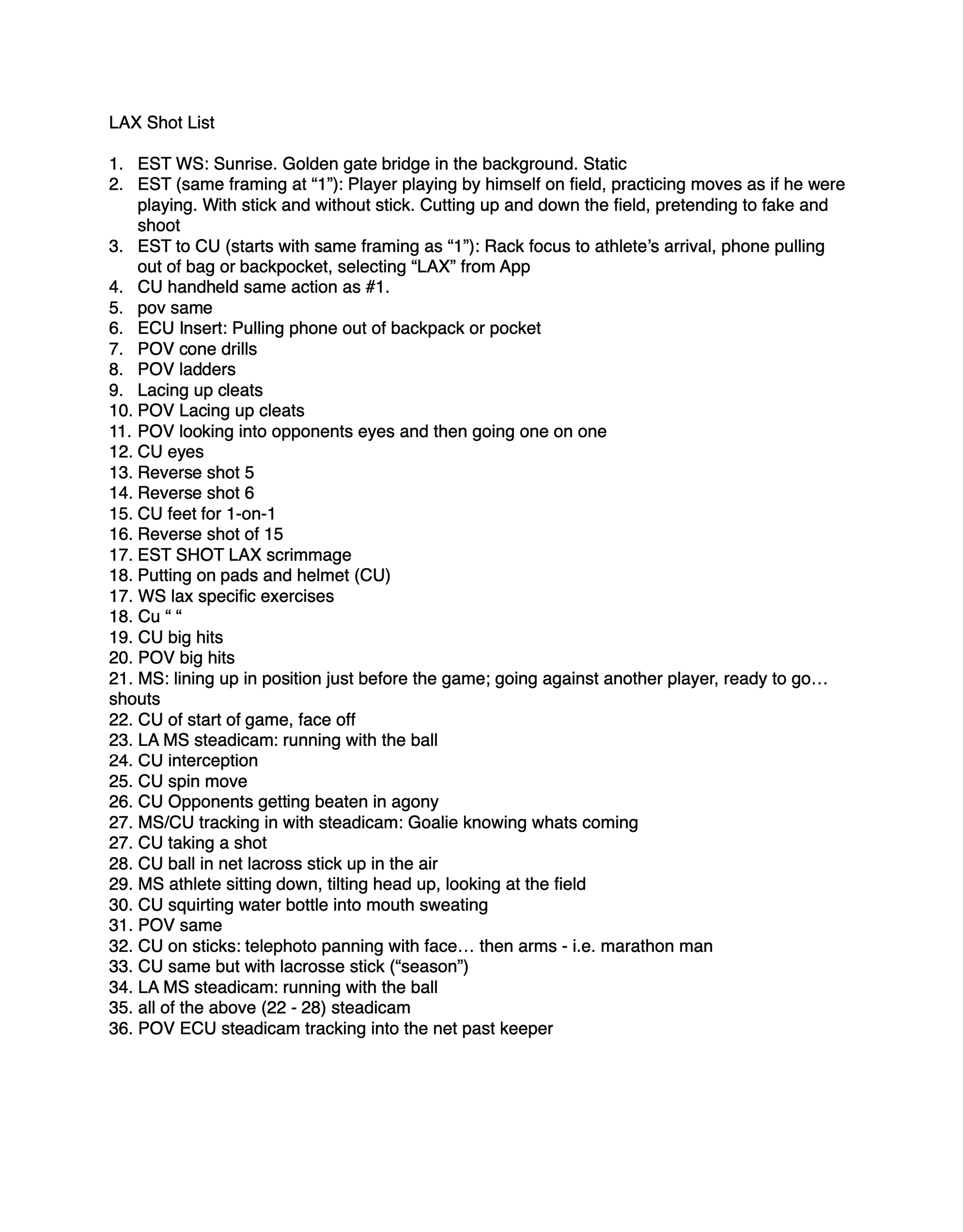 Scripts, Storyboards, Shot Lists